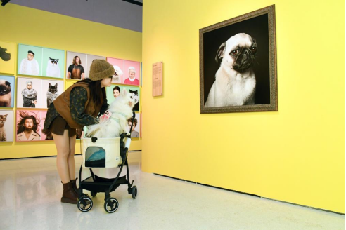3月30日,观众在北京时代美术馆参观《宠物总动员》摄影展。