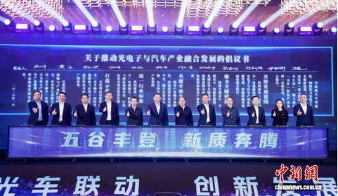 现场,东湖高新区、武汉经开区、江夏区与整车及零部件、光电子、芯片、智能制造等领域企业代表、车百会代表共同签署“光车融合倡议书”,围绕发展路径规划、关键技术攻关、产业生态共建、标准体系协同与应用示范推广等方面,共绘行动路线。