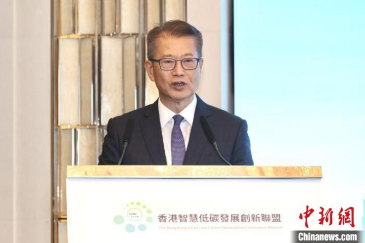 6月2日,香港特区政府财政司司长陈茂波出席“香港智慧低碳发展创新联盟”成立启动仪式并致辞。(主办方供图)