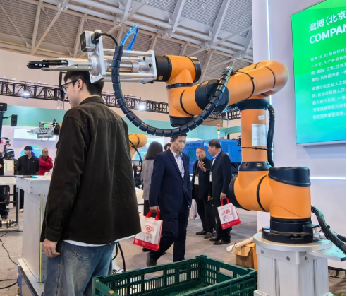 遨博(北京)智能科技股份有限公司在展会上展出的采收机器人。